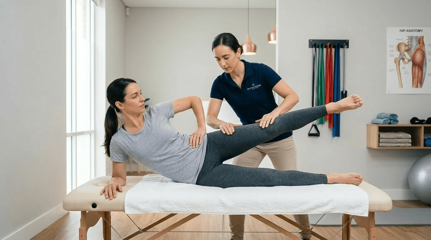 Structured treatment for gluteal tendinopathy, groin strain, hip stiffness, and load-related lateral or anterior hip pain.