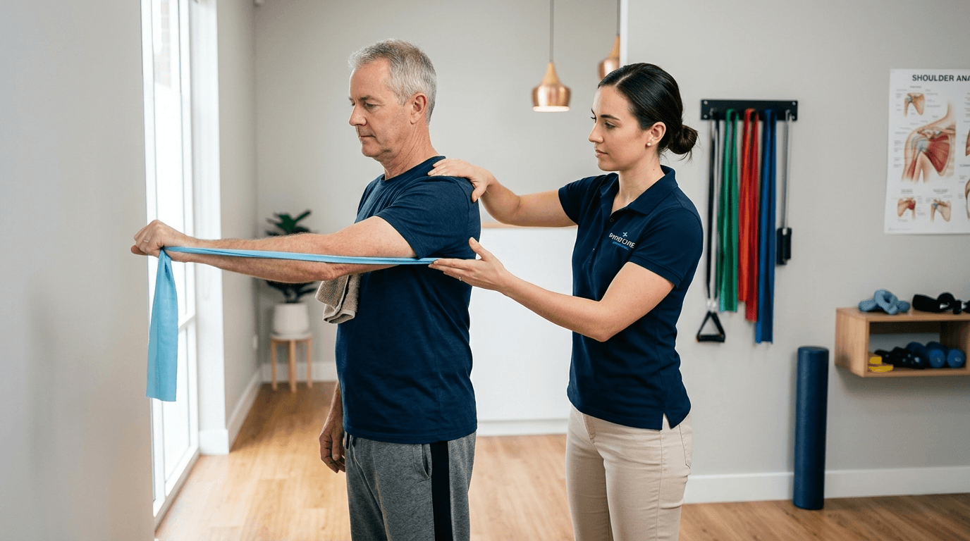 Targeted rehab for rotator cuff pain, impingement-type symptoms, stiffness, and overhead movement limitations.